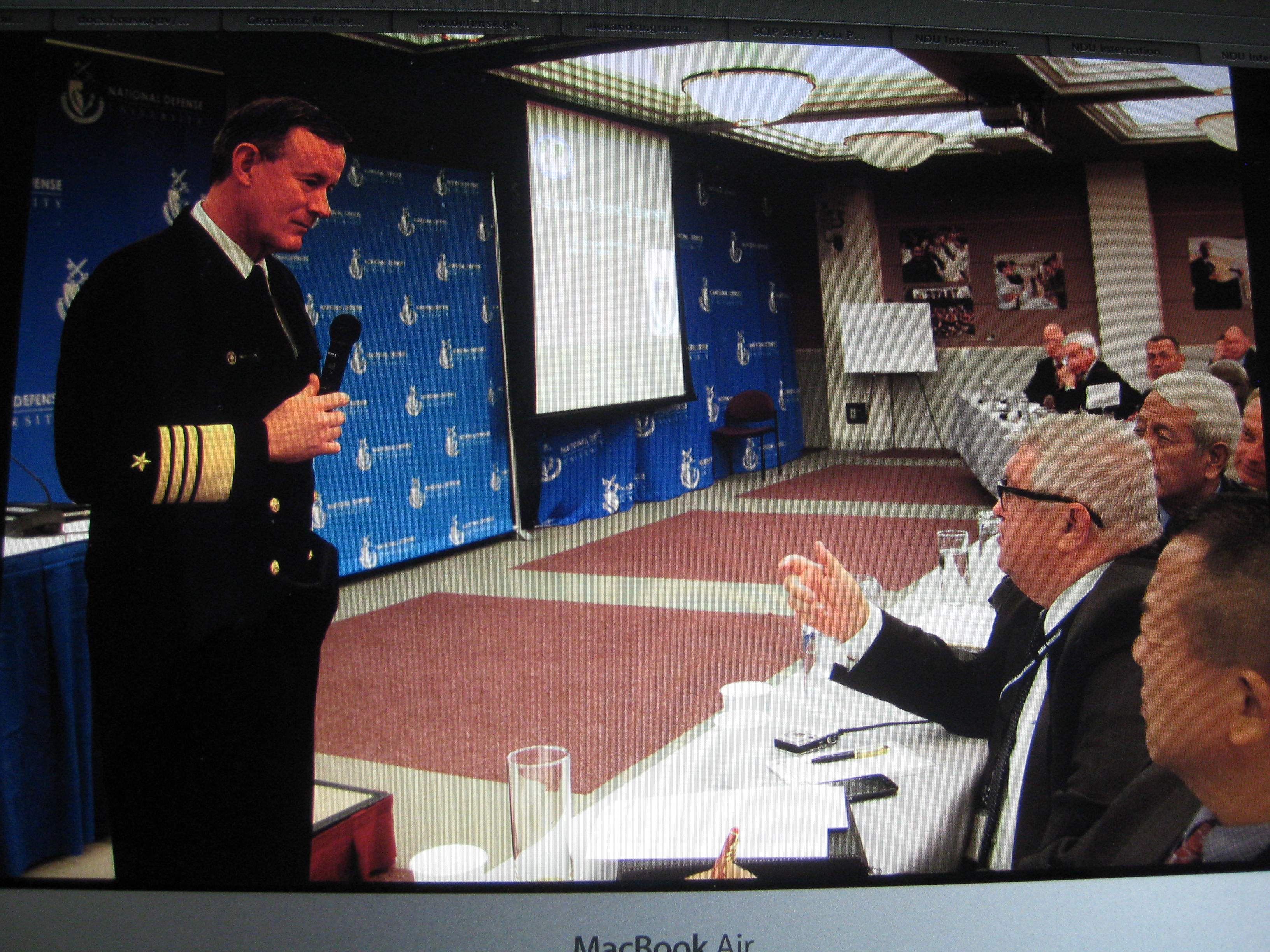 Elementul surpriză al zilelor petrecute la Washington, cu prilejul întâlnirii absolvenților Universității Naționale de Aparare, a fost discuția cu comandantul Comandamentului Forțelor Speciale al SUA, amiralul William Harry Bill McRaven. Amiralul este la comanda Comandamentului Forțelor Speciale SUA din 2011, anterior servind în calitate de Comandant al Comandamentului Întrunit al Operațiilor Speciale (JSOC) și în calitate de comandant al Comandamentului Operațiunilor Speciale din Europa (SOCEUR). A deținut funcția de director al Centrului de Coordonare al Forțelor Speciale NATO unde s-a ocupat de creșterea interoperabilității forțelor speciale din țările membre ale Alianței. De reținut că amiralul a comandat la toate nivelele unitățile care aparțin forțelor speciale, începând cu poziția de comanadant de pluton (Underwater Demolition Team 21/SEAL Team 4). Amiralul a luptat în războiul din Golful Persic, în Operațiunile Desert Shield și Desert Storm, în războaiele din Irak și Afganistan, în Operațiunea Endurig Freedom și în Operațiunea Neptune Spear (Tridentul lui Neptun – cea mai cunoscută operațiune dedicată capturării lui Osama bin-Laden). Amiralul McRaven este creditat cu organizarea și executarea misiunii de capturarea al celui mai căutat terorist din lume: Osama bin-Laden. Conform istoriei nescrise a operațiunii, directorul CIA la acea dată, Leon Panetta, l-a chemat pe vice-amiralul McRaven, la sediul din Langley, Virginia și i-a dat detalii despre locația teroristului numărul unu pentru a pregăti o lovitură militară. Vice-amiralul, un veteran al operațiunilor acoperite, a petrecut câteva săptămâni împreună cu echipa sa (una complexă) dar și cu ofițerii CIA în vederea planificării operațiunii din Pakistan. Rezultatul trei posibile scenarii:(1)folosirea unor elicoptere de asalt din dotarea trupelor SEAL; (2) o lovitură aeriană cu ajutorul bombardierelor B-2 și cu folosirea munițiilor inteligente cu posibilitatea de penetrare inclusiv a unui buncăr ce ar fi putut fi dispus în subsolul clădirii; (3) un raid împreună cu serviciile de informații pakistaneze cărora urma să li se aducă la cunoștință operațiunea cu câteva ore înainte de derulare. Scenariile au fost discutate în două ședințe ale Consiliului Național de Securitate, unde inițial s-a mers pe adoptarea scenariului cu utilizarea avioanelor B-2. S-a renunțat datorită victimelor colaterale care puteau apărea și datorită faptului că nu vor exista dovezi privind lichidarea lui bin-Laden. În ciuda temerilor exprimate de șefii din Pentagon că bin-Laden nu ar fi în clădire soluția aleasă a fost aceea a unui atac al trupelor SEAL transportate în zonă de elicoptere, fără a înștiința partenerii pakistanezi, cărora, conform spuselor președintelui le-ar fi trebuit nanosecude să se deconspire. A mai fost studiat un scenariu nou privind utilizarea unei drone cu muniție tactică care să lovească clădirea da și acest scenariu a fost refuzat. Odată aprobat planul de atac amiralul McRaven a pregătit o echipă formată din membri ai Red Squadrom care activase în Afganistan și puteau fi mutați în zonă fără a atrage atenția (echipa avea cunoștințe de limbă pakistaneză și experiență în acțiuni de trecere a frontierei afgano-pakistaneze). Antrenamentele s-au efectuat la baza Bagram pe o cladire identică cu cea care urma să fie atacată. O situație delicată pentru președinte și planificatori a fost pe 30 aprilie când Obama după ce l-a sunat pe amiralul McRaven și i-a urat succes în misiune a participat la dineul Asociației Corespondenților de Presă de la Casa Albă unde actorul de televiziune Seth Meyers a făcut următoarea glumă: Oamenii cred că Osama bin-Laden se ascunde în munții Hindu Kush dar voi știți că el între 4 și 5 pm ține un show la C-SPAN. Reacția lui Obama a fost un surâs urmat de un hohot de râs, deși știa că operațiunea primise OK-ul. Pe 1 mai acțiunea din Abottabat a fost urmărită în direct în Situation Room la Casa Albă ( alte două centre de monitorizarea fuseseră instalate la Pentagon și la ambasada americană de la Islamabad în timp ce o dronă operată de generalul de brigadă Marshall Webb monitoriza acțiunea din aer). Atacul de la Abottabad a fost coordonat de amiral care se afla pregătit, într-un elicopter al trupelor speciale într-o bază militară de la Jalalabad, pentru o eventuală intervenție. Poposit la NDU pentru o prelegere în cadrul orelor de învățământ desfășurate de studenții Colegiului de Război a fost invitat pentru un scurt brifing în cadrul seminarului. Bill ne-a spus că în forțele speciale nu sunt numai militari care îndeplinesc misiunile de luptă. Peste 40% sunt civili cu cele mai diferite ocupații de la ingineri de telecomunicații la doctori sau arhitecți. Este de fapt o echipă multidisciplinară care crează toate condițiile pentru reușita unei operațiuni militare. Cert este că operațiunile speciale nu sunt similare celor din filme (spre exemplu filmul Zero Dark Thirty regizat de Bewigged Naomi Watts despre capturarea lui Osma bin-Laden pe care amiralul, după spusele sale, nu l-a vizionat). Discuția cu noi a deschis-o cu un set de întrebări: cine suntem, unde mergem și la ce provocări facem față? Forțele speciale sunt o forță de aproximativ 60000 de militari (berete verzi, SEAL, etc). Comnadamentul a fost creat prin lege de Congresul SUA, în 1987, după evenimentele de la Teheran. Comandamentul are ca misiune pregătirea forțelor speciale, realizarea planurilor de intervenție și implicarea forțelor în zonele de conflict cu aprobarea comandanților responsabili de zona geografică respectivă. Din cei peste 60 de mii de combatanți, răspândiți în peste 78 de țări, peste 40% sunt destinați sprijinului logistic. Militarii au în jur de 28 de ani când încep ciclul de instru